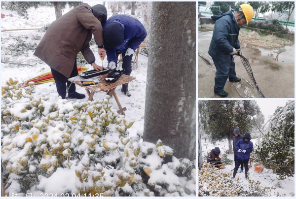 自2月2日晚出现冻雨天气,武汉市新洲区太和村、团强村、王屋村等地出现大面积断杆、倒杆,严重影响了当地居民的通信网络信号。冰天雪地中,新洲分公司的抢修人员冒雪前行,克服道路积雪结冰、行车受阻等重重困难,开展线路巡检与宽带维修工作,对受损严重的倒杆、断杆进行抢修,及时处理光缆故障,尽最大努力降低故障发生率,确保网络运行平稳。 目前抢修工作仍在持续进行中。