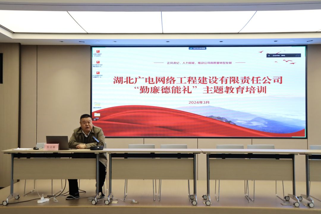 为落实“正风肃纪、人力赋能,推动公司高质量转型发展”主题活动安排,进一步提升员工的专业素养与综合能力,近日,工程公司开展了“勤廉德能礼”专题培训活动。本次培训采取现场与线上相结合的方式举办,公司全员参与,公司总部、系统集成分公司、市政分公司、武汉分公司全体干部员工在湖北广电网络大厦五楼培训室现场参加培训。