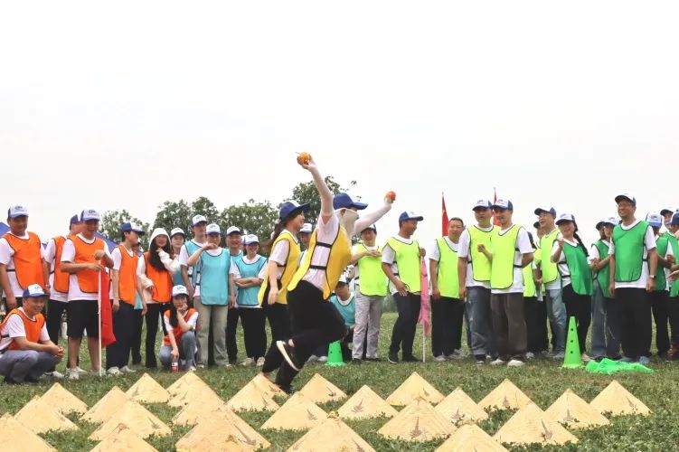 刘娟在户外团建活动中参与小组游戏